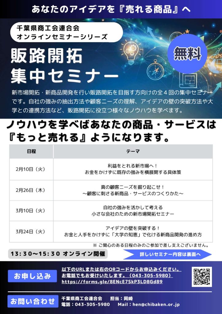 2月・3月(全4回 PM13:30~15:30) 販路開拓集中セミナー