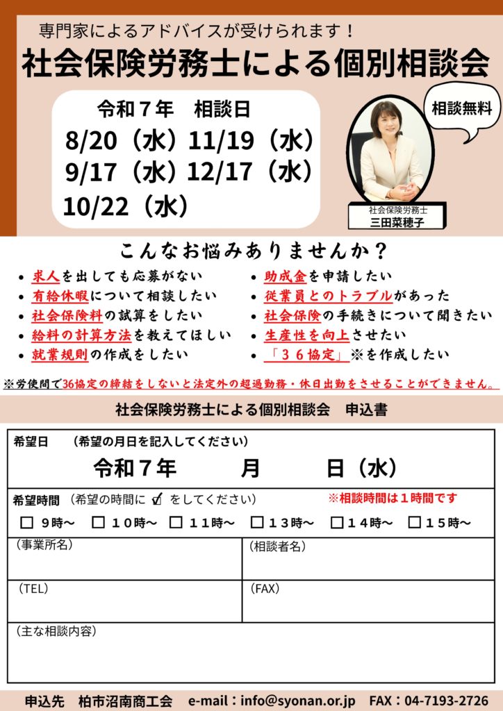 社会保険労務士による無料相談会を実施しています。