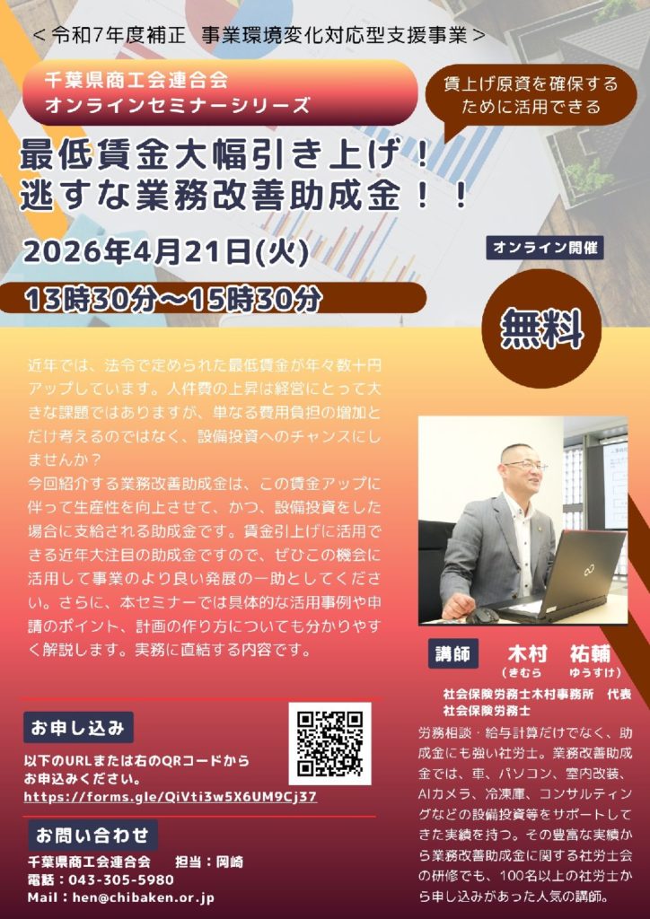 千葉県商工会連合会ではオンラインセミナーを随時実施しています。